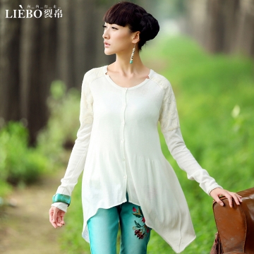 | ? | 设计点:精巧圆领(两侧开小口) /插肩袖 / 网布绣花花边拼接 / 单排扣门襟 / 甜美糖果色纽扣 / 百搭长袖 / 罗纹袖口 / 高腰分割效果 / 褶皱装饰 / 不规则下摆 /轻薄针织衫 | |